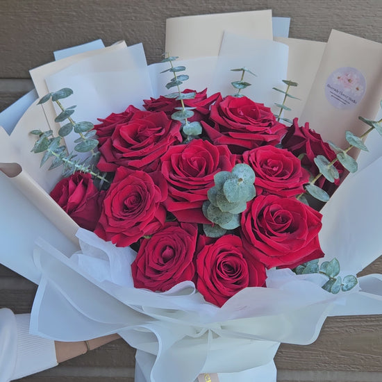 A timeless way to say what words can’t. This bouquet features twelve premium roses, hand-selected for their rich color and full blooms, and thoughtfully arranged with fresh greenery for a refined, elegant finish.