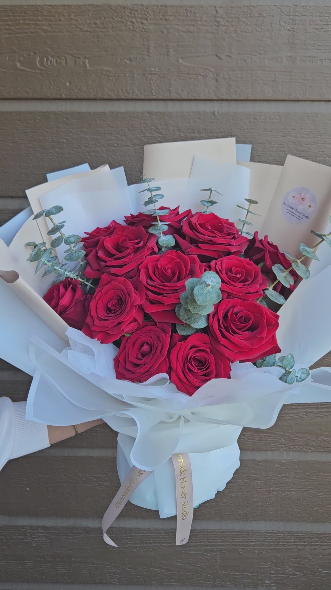 Details: • 12 premium roses • Fresh seasonal greenery • Hand-designed with care